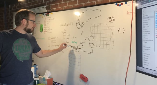 When we started, we had a huge 10-foot (maybe even larger) whiteboard. We've since tried to digitize and move away from physical white boarding, but we still come back to it during our planning stages.